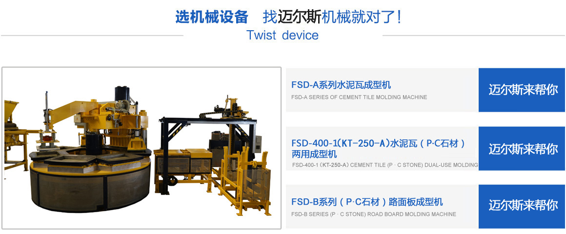 常熟市邁爾斯機(jī)械有限公司是一家集研發(fā)、生產(chǎn)、銷(xiāo)售于一體的建材機(jī)械高科技企業(yè),其前身為2011年注冊(cè)創(chuàng)辦的“常熟市虞山鎮(zhèn)豐順達(dá)機(jī)械配件廠(chǎng)”,經(jīng)過(guò)多年的努力,于2017年注冊(cè)成立“常熟市邁爾斯機(jī)械有限公司”,專(zhuān)業(yè)生產(chǎn)模壓水泥彩瓦機(jī)、P.C石材機(jī)、轉(zhuǎn)盤(pán)式成型機(jī)、彩色路面磚機(jī)等綠色建材設(shè)備。公司以市場(chǎng)為龍頭,以技術(shù)為導(dǎo)向,開(kāi)發(fā)了系列化、標(biāo)準(zhǔn)化的適銷(xiāo)對(duì)路的機(jī)械產(chǎn)品,并且注冊(cè)了多項(xiàng)國(guó)家專(zhuān)利技術(shù),銷(xiāo)售范圍覆蓋全國(guó),并且出口越南、老撾等東南亞和其它國(guó)家。